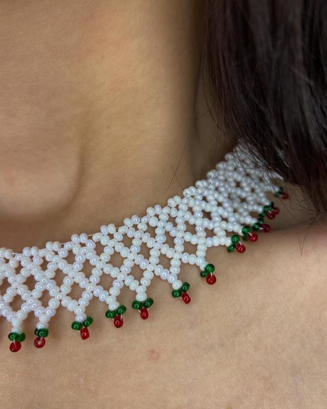 Виготовлена з чешського бісеру. Застібка металева. Довжина-35см,+ланцюжок-8см, ширина-2,5см