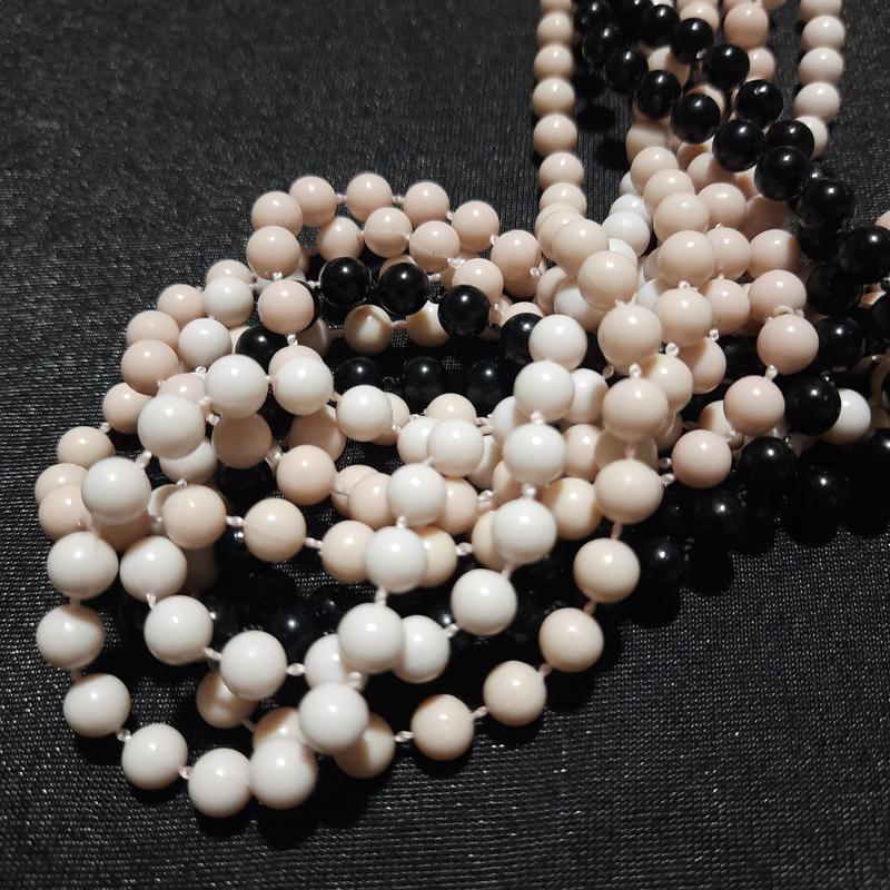 Неймовірно красивий набір бус, чотири кольори (білий, чорний, беж, пудра). Довжина (обхват) 120 см., пластсмаса