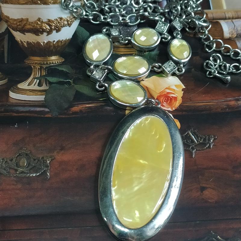 Кольє з брошировано металу з перламутром під епоксидною смолою