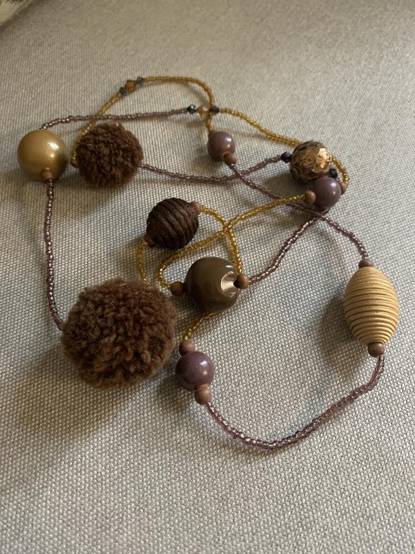 Оригинальные винтажные бусы из бисера и пряжи. Длина 67 см.