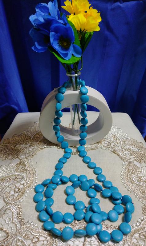 Намисто з плескатого каменю бірюза довжина виробу 120см