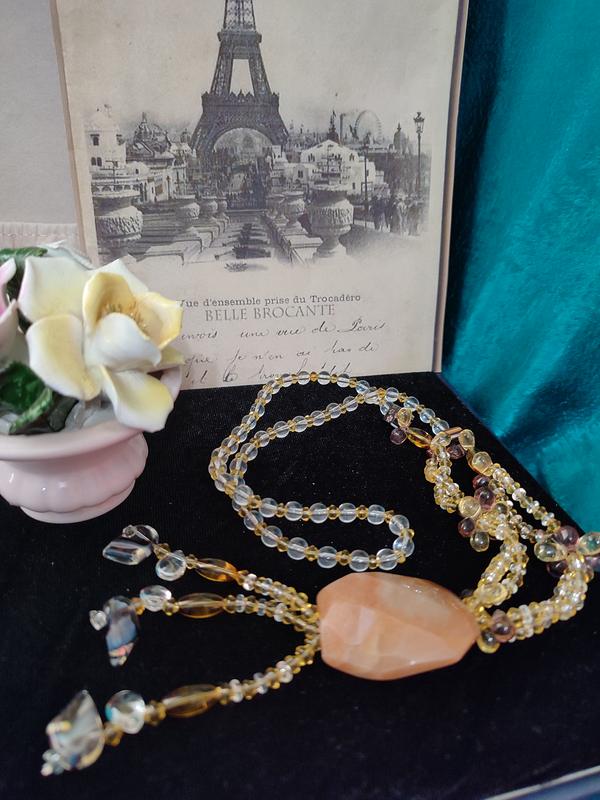 Вінтажні вишукані буси, намисто з каменем авантюрин, склом та мільфіорі (сотуар). Скло напівпрозоре жовте та біле, на сонці красиво виблискує. довжина 46 см (92). Дивіться реальні фото. Підпишіться на наші оновлення