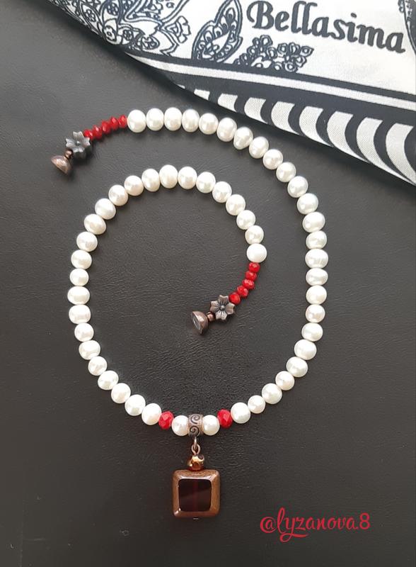 Намисто с кулоном. Натуральні,білі перлини. Намистини чешського кристалю. ☆☆☆☆☆☆☆ Фурнитура мiдна, застібка магнітна. Довжина 39см. 📍товар надсилається при частковій або повній оплаті на картку.