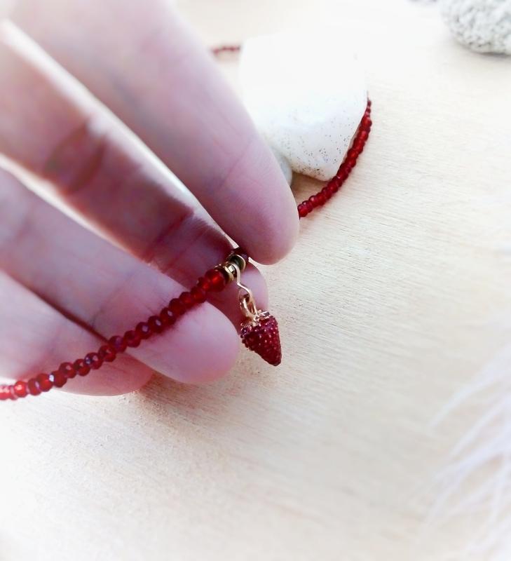 Клубничка чокер ожерелье красный винный гранатовый хрусталь на шею аксессуар символ соблаз...