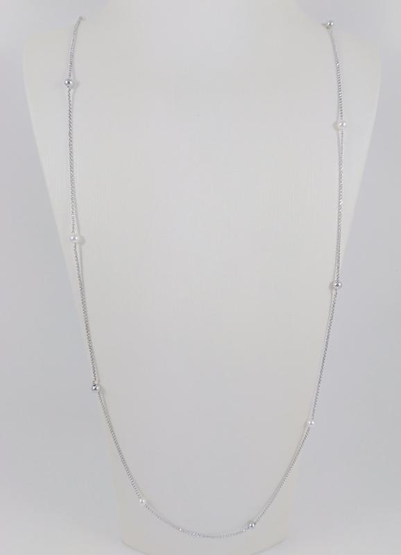 Характеристика колье : - Металл: серебро - Проба: 925. Изделие опробировано пробирной палатой Украины - Покрытие: родий - Средний вес: 5.77 гр - Длина : 90-94,0 см - Вставки: жемчуг культ. ##