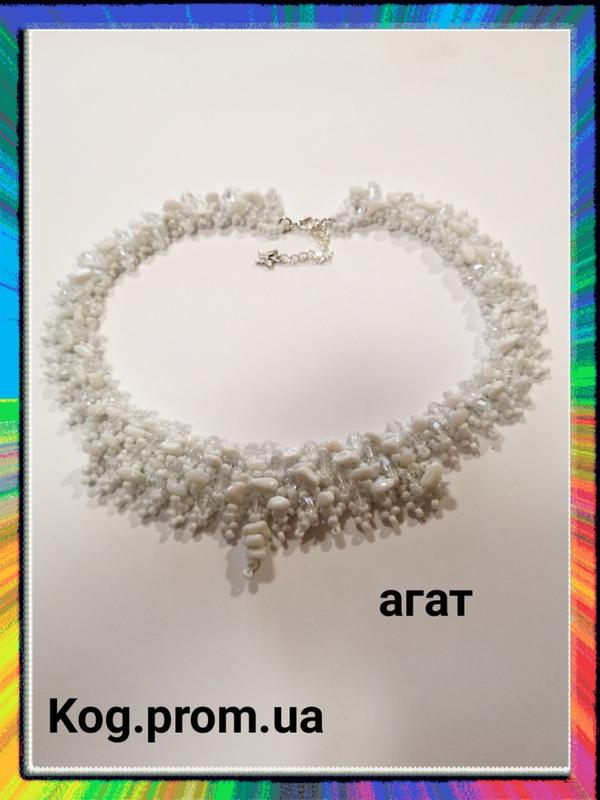 Колье, ожерелье с белым агатом. Богатое, красивое украшение ручной работы.