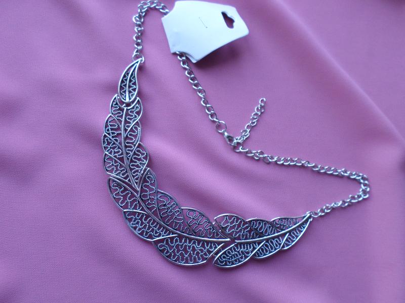 Колье из металла. Два варианта: серебристая и золотистая бронза. Длина цепочки - 54 см. Регулируется на любую длину. Размер передней части - 14 см. 3 см. ширина. Подарок - упаковка