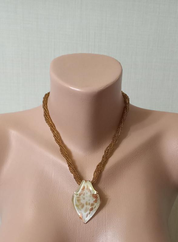Продам кольє намисто з чеського бісеру, відмінної якості, довжина регулюються, максимальна 50 см. Підвіска розміром 6 х 3,5 см.