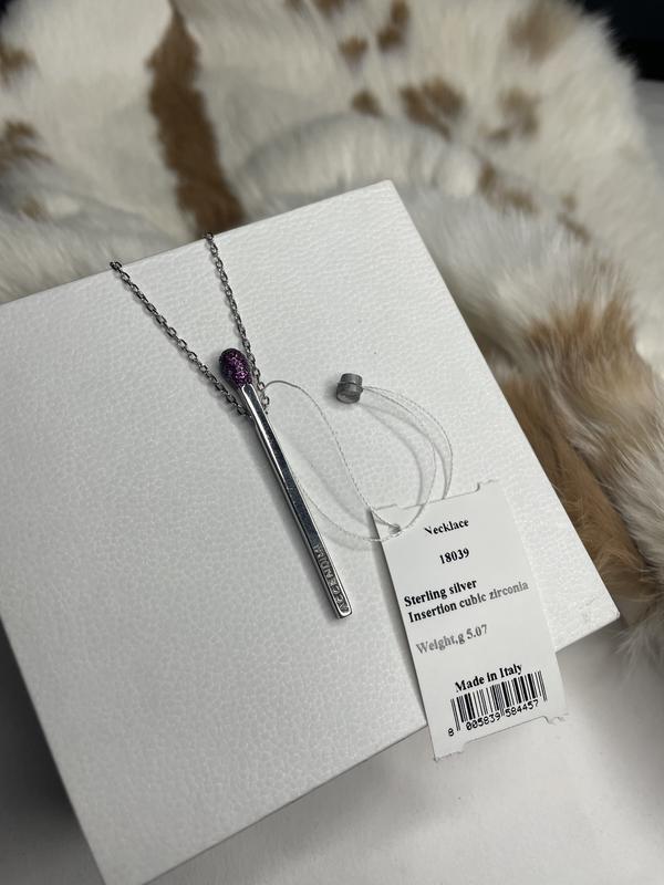 Серебряное ожерелье с подвеской в форме спичке с камешками спичка с розовыми камнями кулон...
