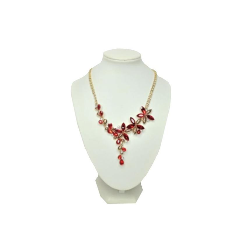 Кольє вечірнє з червоними камінчиками