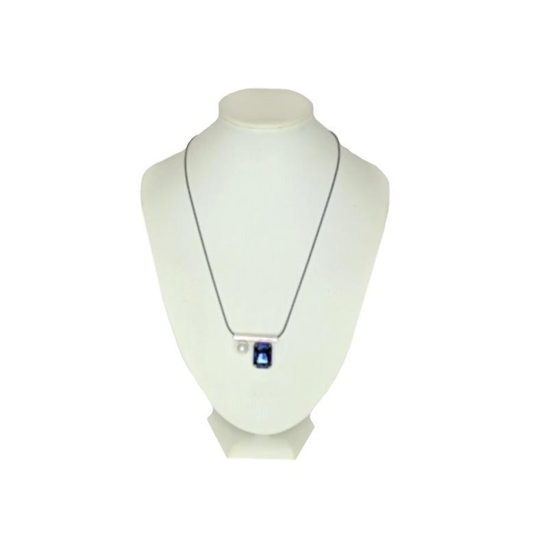 Кольє синій кристал з перлиною
