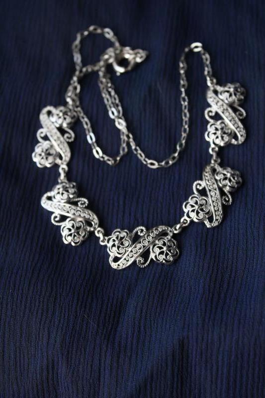 Серебро 925 шикарное колье скань филигрань с цветочными мотивами