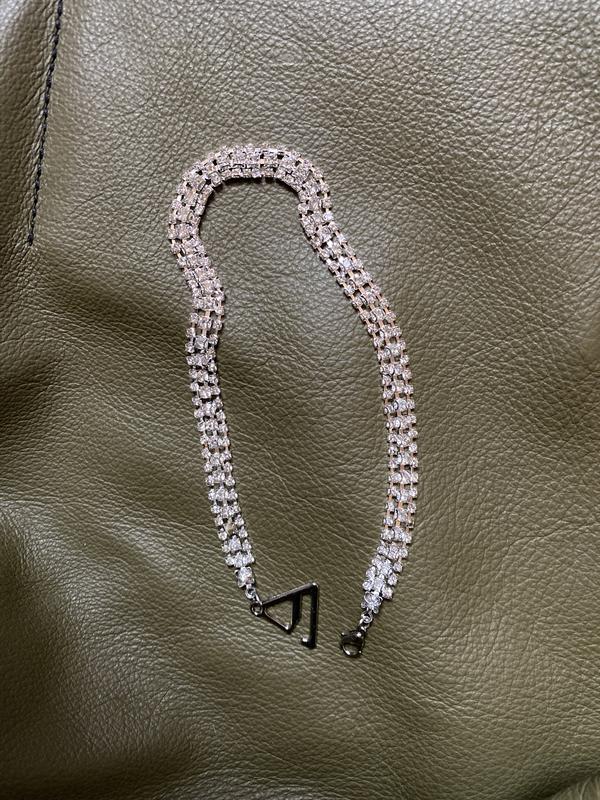 Чокер с подвижными стразами, шикарно смотрится на шее. За счет подвижных страз не передавливает, не мешает, забываешь о нем в первые же секунды. Длина с застежками 31,5 см, на худи девушку.