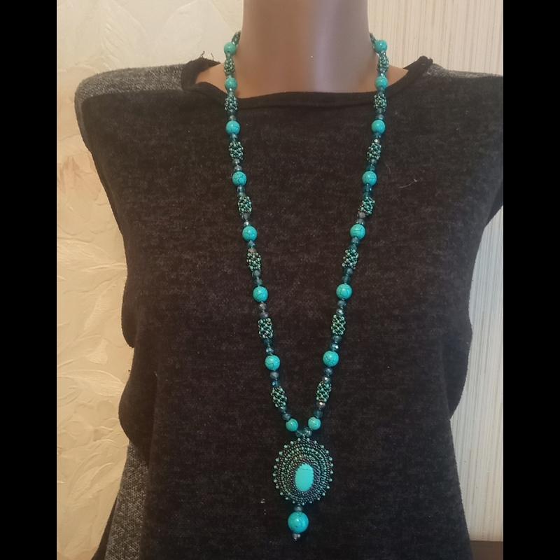сотуар з намистин говліту чеського хришталю та бісеру.довжина 80см