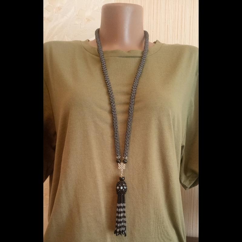 сотуар из чешского бисера и бусины агата. длина 82см подвески11см.
