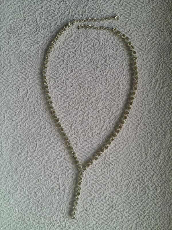Оригинальное колье из белого металла и бледно-жёлтых кристаллов. Длина колье 45 см Длина подвески 5 см
