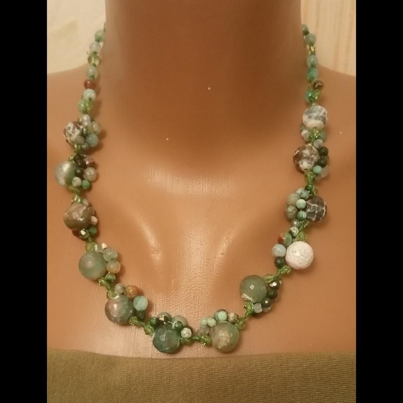 колье из зеленого агата.фурнитура бижутерный сплав серебряного цвета. длина49см