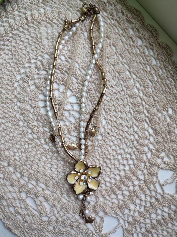 всі камінці на місці метал, річний жемчуг, крупні намистини довжина трішки регулюється
