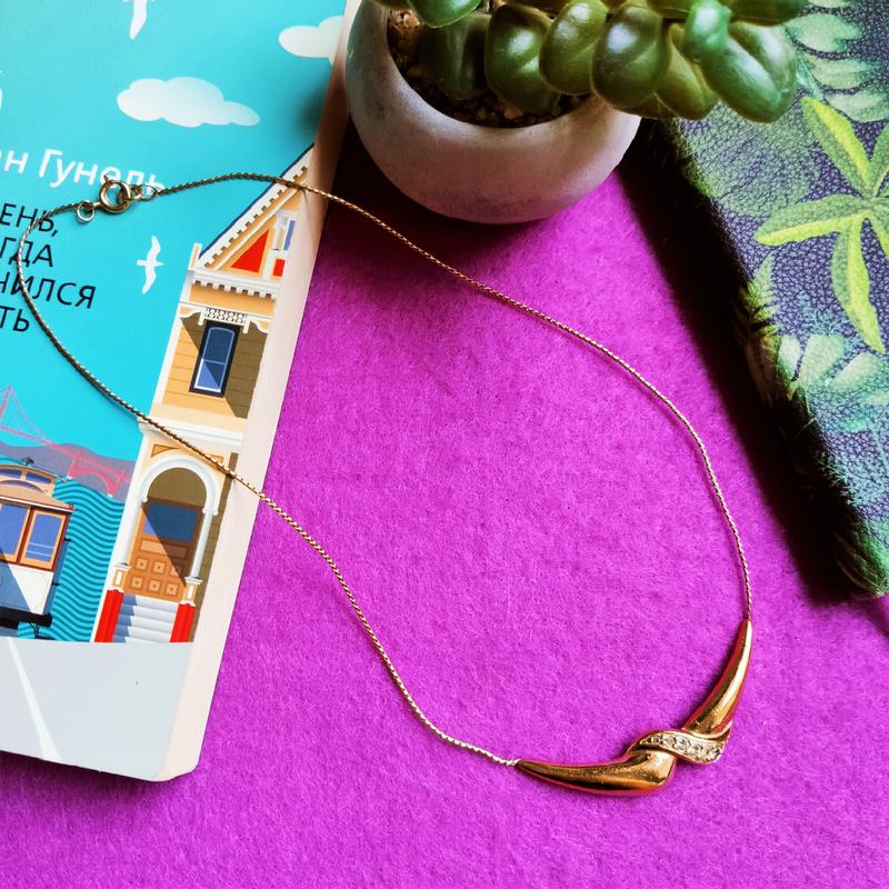 Красивое винтажное колье знаменитой американской компании TRIFARI, созданное, судя по типу маркировки, в 70-х - в начале 80-х годов. Тонкую изящную цепочка со шпрингельным замком украшает центральная вставка в виде завитка, декорированного круглыми кристалликами разного диаметра. Украшение выполнено из золотистого бижутерного сплава полированной текстуры. Колье промаркировано, в очень хорошем состоянии, с минимальными следами времени. Длина - 44 см. На фото - шея с окружностью 31,5 см. К объявлению прикреплен видеообзор.