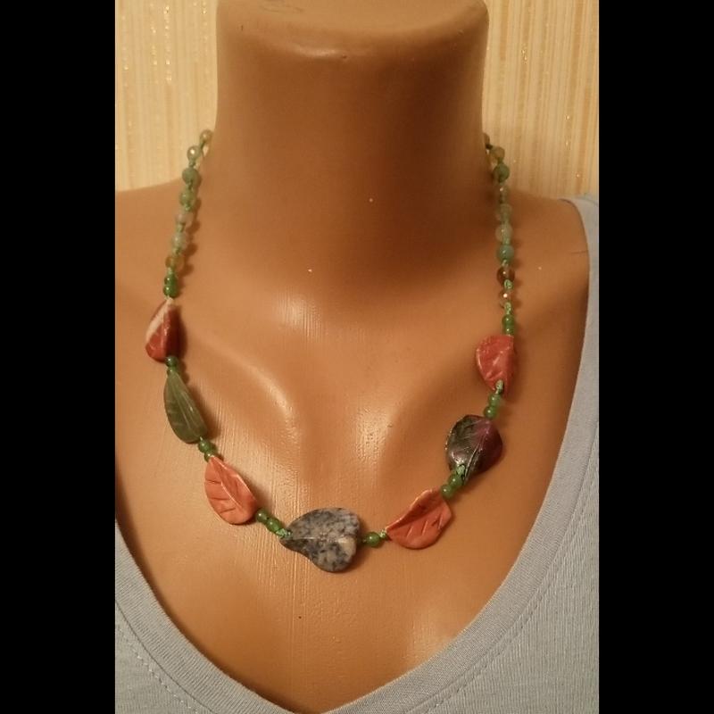 ожерелье с яшмы и кварца. фурнитура бижутерный сплав. длина 50см.