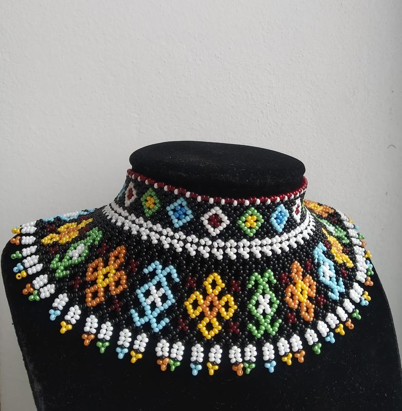 Ручная работа, изготовленная из качественного чешского бисера. Ширина - 7 см. Длина изделия с фото - 36 см. Возможно исполнение нужной Вам длины. Застежка - карабинчик или завязки, на Ваш выбор. Отправка по любой удобной для Вас почте.