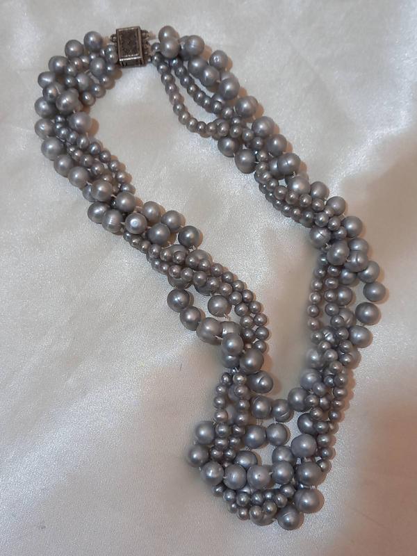Розкішне чотирьохрядне намисто з натуральних перлів,рідкісний сріблястий відтінок,не тоновані,довжина 50см., діаметр перлин 5і 10мм.