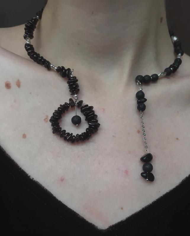 Колье «Коло» 🌗Материалы: гранат, обсидиан, скамья, мемори-дрит, металлическая фурнитура 🌖Подстраивается под обхват шеи, сохраняет форму, оптимально 34-38 см