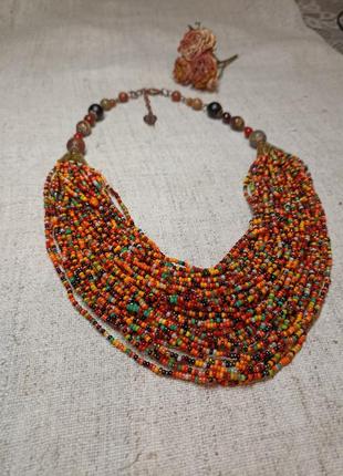 Різного кольору бісер (чеський) складає об'ємну частину намиста. Продовження до застібки з натуральних мінкралів- яшма, Авантюрин, тигрове око Можна підібрати інші відділки під колір вашого вбрання/очей/волосся..... Прошу уточнюйте, будь ласка, наявність ❤️