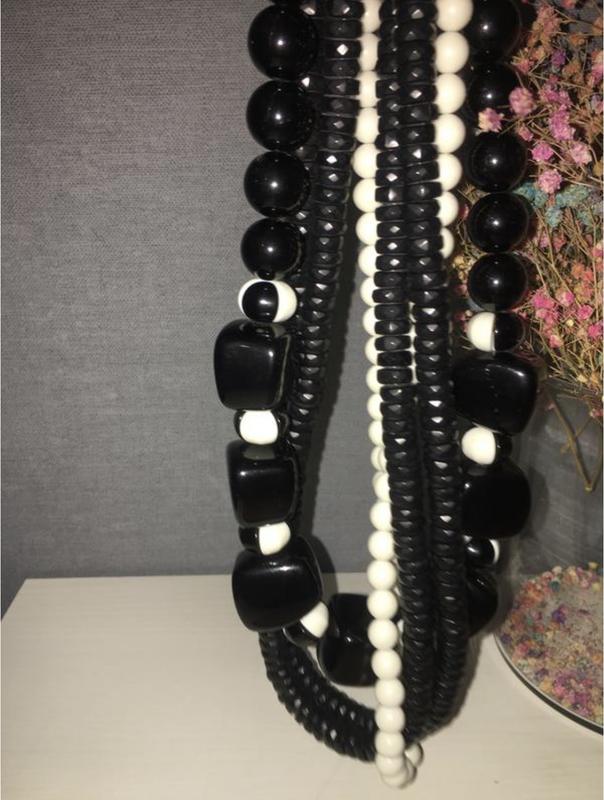 Масивне прикраса складається з чотирьох ниток різноманітних бус в монохромній гамі. Шикарно виглядає навіть просто на білу сорочку. Освіжає образ і надає пікантності. Оригінал. Нове, не носилося. Спонтанна покупка .