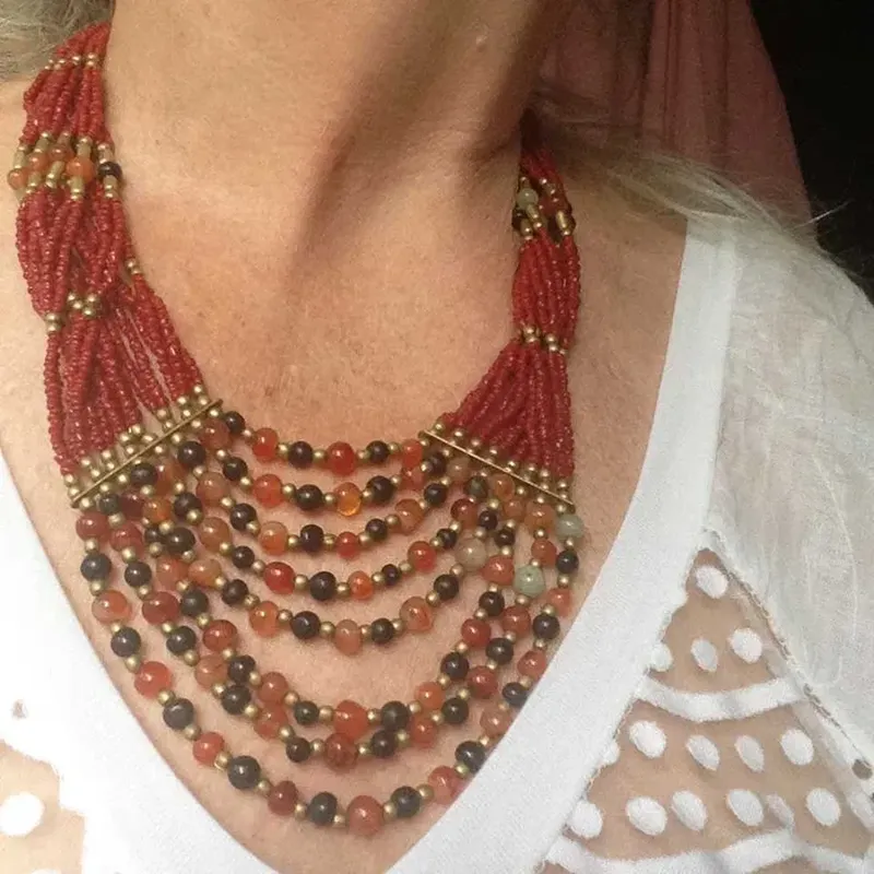 Не новые. Целые. Камни сердолик, агат, латунь и бисер. Вес 115 грамм. Длина 50 см и ширина 5 см и 4 см.