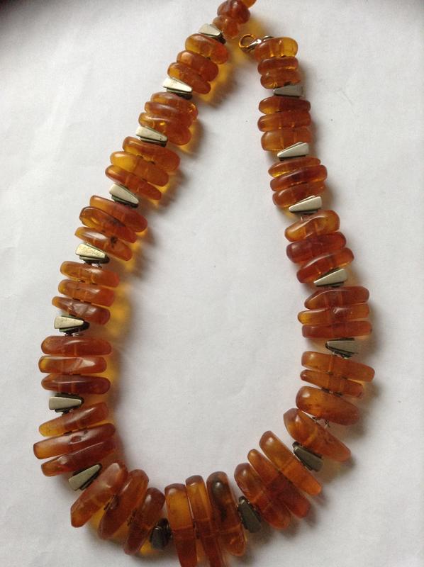 Колье из натурального янтаря с мельхиором. . редкрй винтаж.