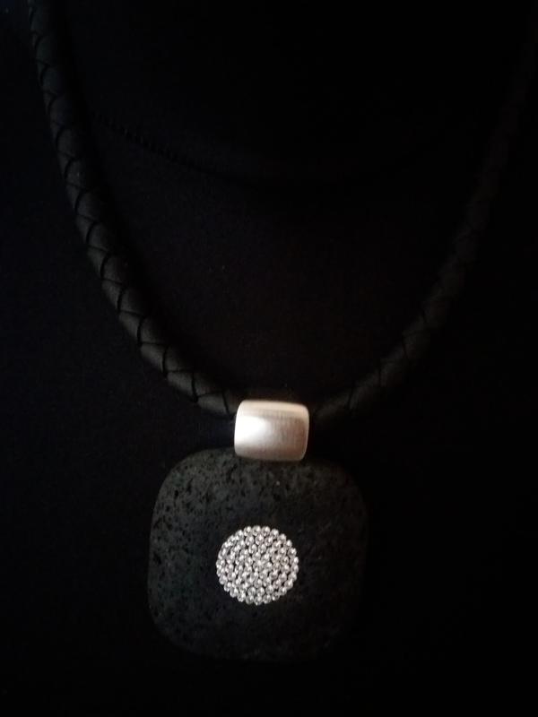 колье, вулканическая скамья, Камни Сваровские, кожа, приобрела пару раз, клеймо PL?