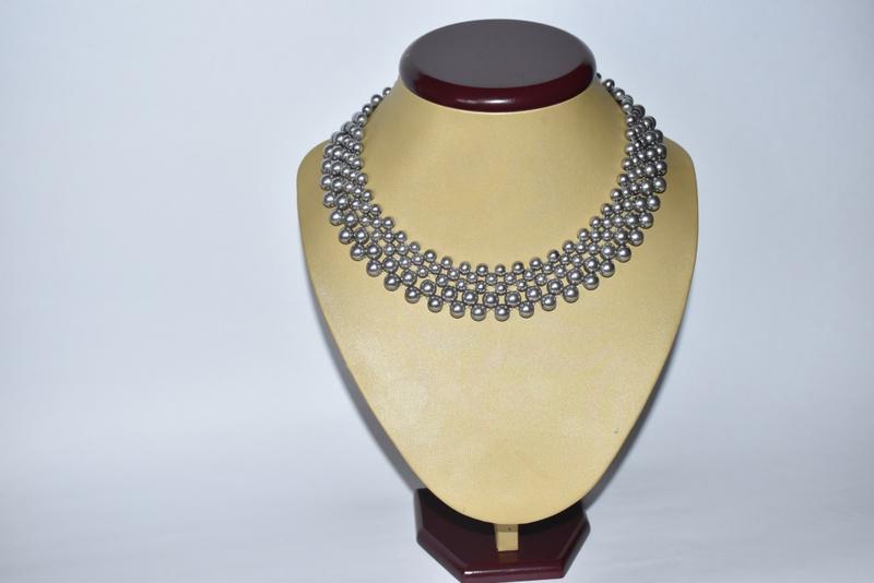 Перламутрове кольє (комірець) "Сріблястий дим" зі скляних намистин. Вага - 100 г. Довжина від початку до кінця 46 см + 10 см ланцюжок-подовжувач. Довжина регулюється. Пакування - мішечок. Hand made!