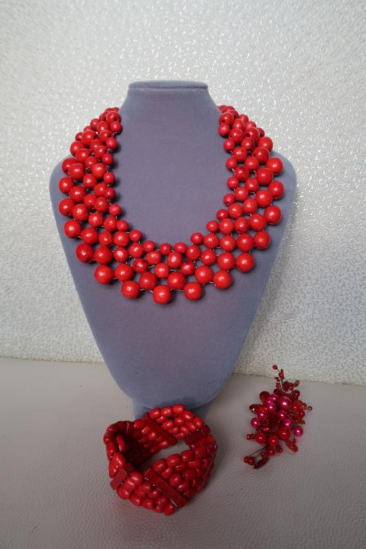 Буси-намисто на шию червоні дерев яні на металевій застібці