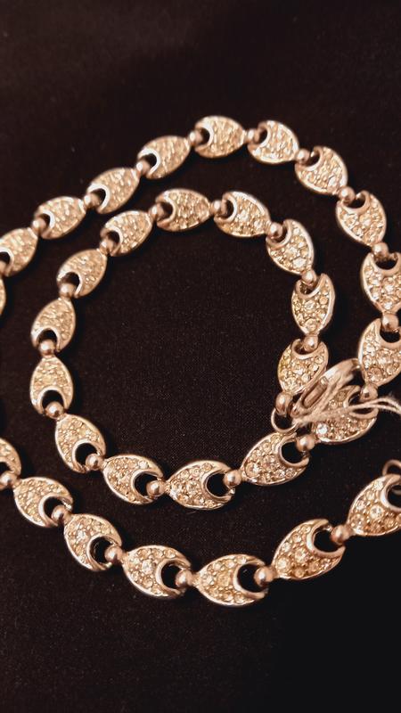 Колье с камушками, выполнено из одинаковых звеньев из белого металла со встроенными белыми камушками, красиво ложится, универсальное, подойдёт и украсит любой наряд!! Серебрянный металл в тренде этого года!! Фирменная бижутерия!!! Длина изделия - 43см.