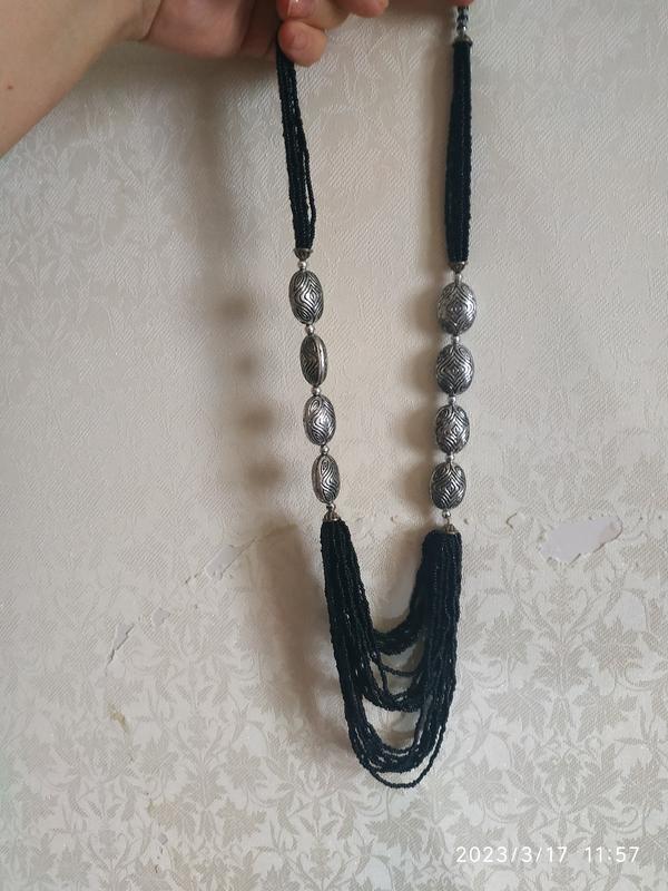 Колье, бусы серебристо-черные. Бисер и металл, длина 72 см. Этнический стиль. Стан идеален, без дефектов. Очень красиво смотрятся.