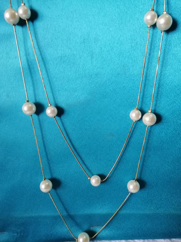 Ожерелье в два ряда Европа. под жемчуг. Состояние очень хорошее Размер на фото с линейкой. Длина 78-80 см. Бусины лёгкие, перлламутр целый.