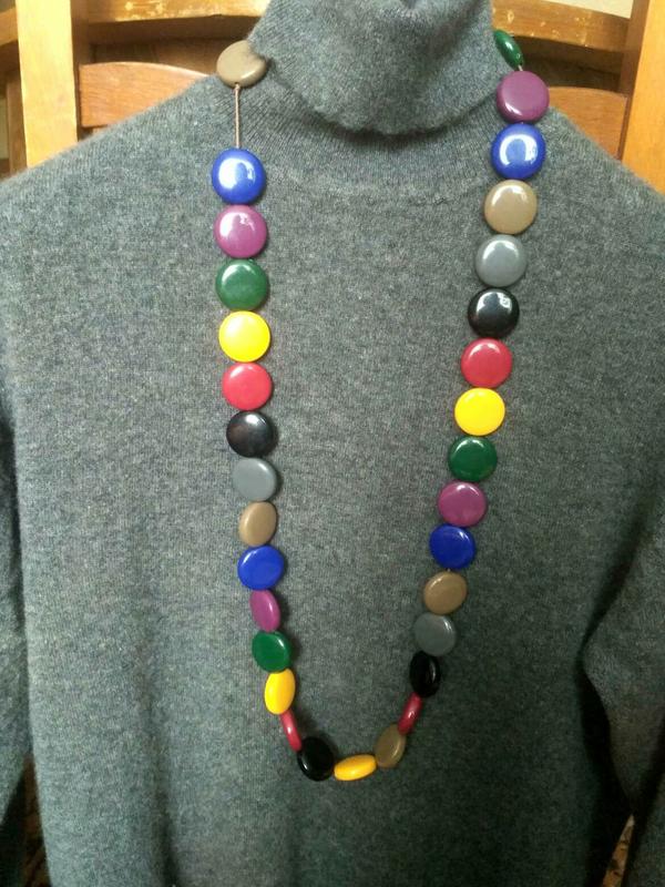 Намистини пластик, досить важке. Кольори дуже гарні, благородні, стримані - фото зробило їх надто яскравими.