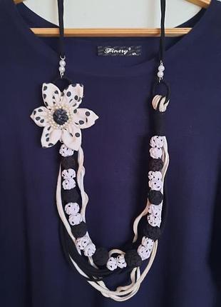 Черно-белые бусы текстильные