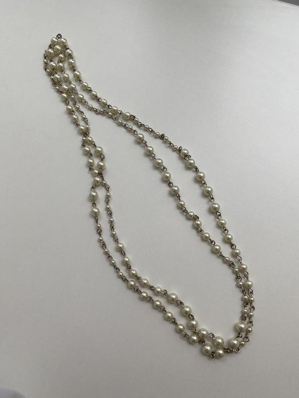 Продам красивую длинную цепочку из искусственного жемчуга. Одевала 2 раза. Хранилась в шкатулке, местами потемнели немного звенья. В носке вообще не заметно. Не имеет замочка, сплошная. Длина 118 см.