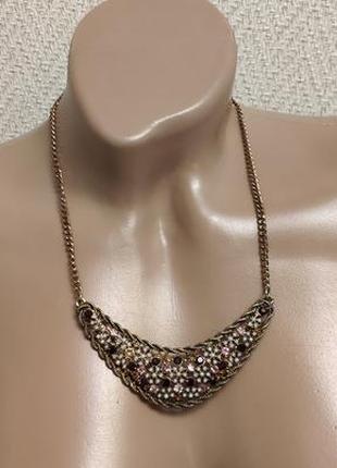 Вінтажне кольє вражає своїм стилем і багатством. На жаль, утрачені два стразики (. На погляд не видно... але факт залишається!) В ціну враховано. Заміри на фото.
