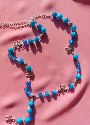 Ожерелье из искусственного камня, бусин и металла Длина 82 см. подвеска 7 см Подарочная упаковка к каждому заказу