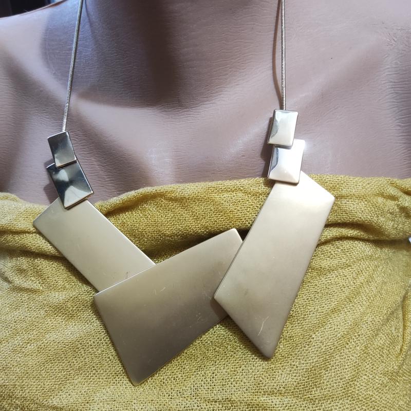 Авангардное колье из золотистого металла английского бренда Oliver Bonas. Имеет незначительные потертости, при ношении в глаза не бросается. Длина 48 см+ 7