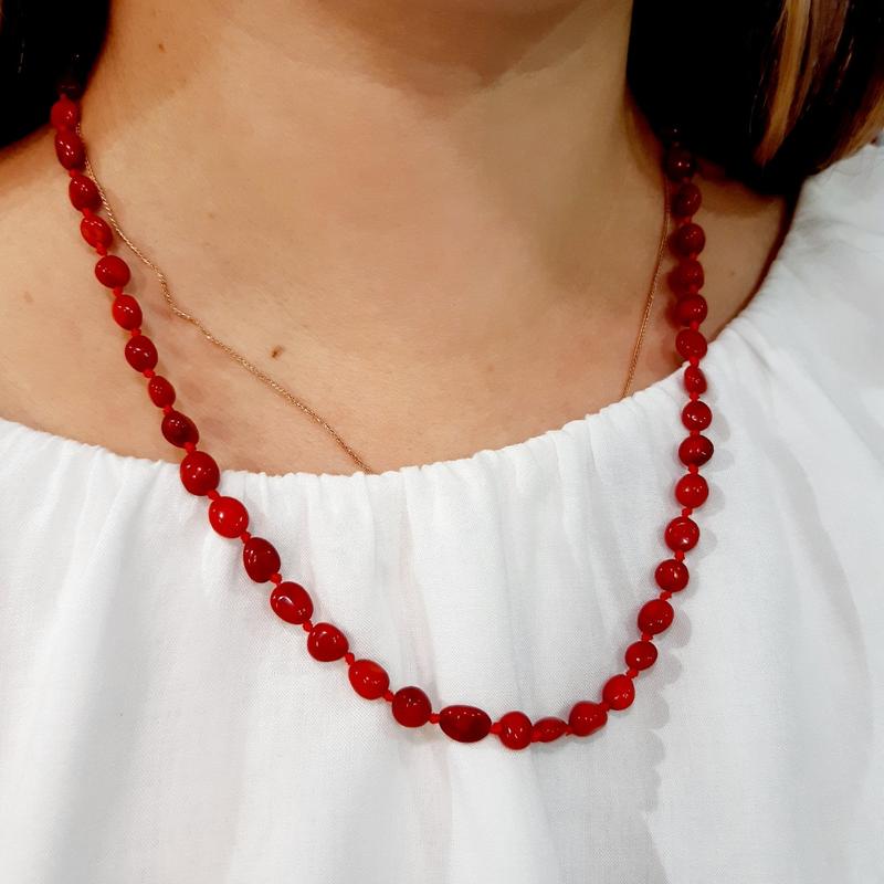 Женские бусы "красный коралл" длина 50 см, бусины галтовка 6 - 8 мм - оригинальный подарок...