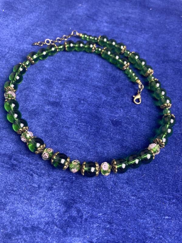 Ожерелье - однонизковий.Натуральный камень, стекло,фурнитура под бронзу. Длина 48+7см