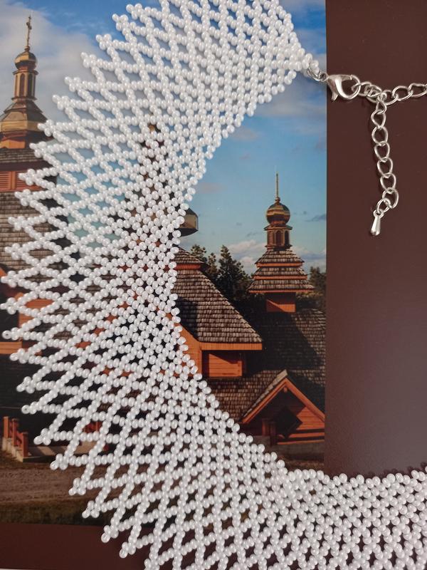 Нежная белая силавка, которая подойдет к любому образу длина до 38см( уточнять)+удлинитель 6см ширина 4см чешский бисер. Возможен повтор в другом цвете и размере