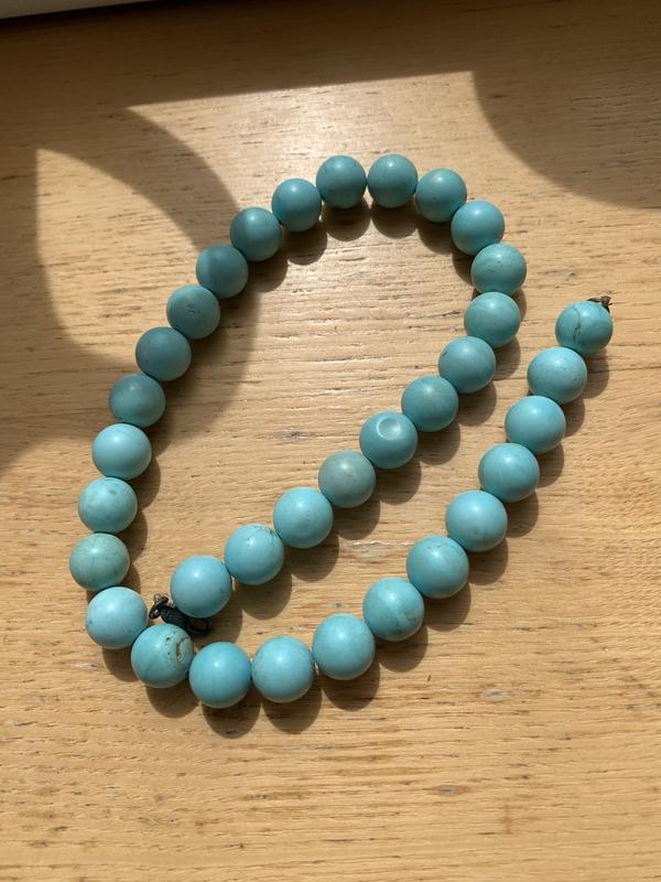 Натуральная бирюза. Длина 40 см, диаметр бусины 10 мм
