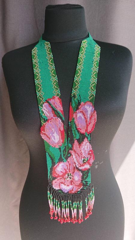 Выполнен из чешского бисера по авторской схеме Дарьни Дрожко. Довжина —58см., ширина —9,5 (+1)см.