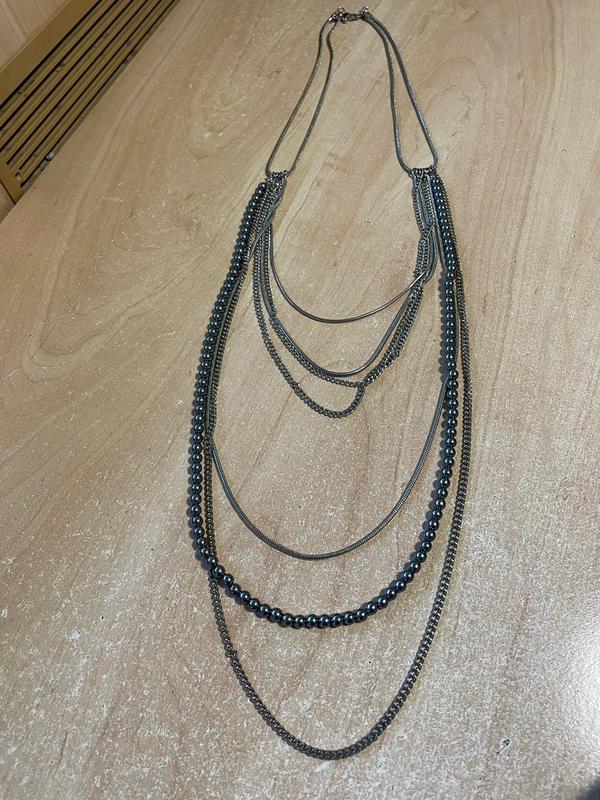 интересно колье из цепок и бусин, является незначительным восхождением, но его практически не видно в носке, из Европы, бижутерия, достаточно "весистая".
