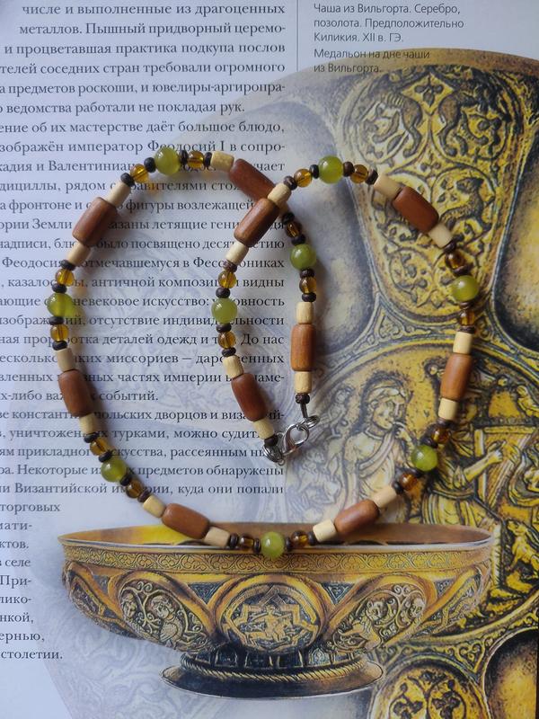 Тренд эко чокер, колье, ожерелье, подвеска, бусы, кокос, дерево, оникс, янтарное стекло в...